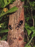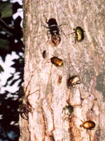 ・ミヤマクワガタミヤマクワガタとカナブンです。どんぐりの木の樹液には いろいろな昆虫が集まってきます。 |