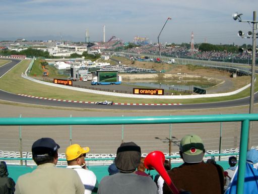 さてF1行ってきたのです。なんか凄い人が多い・・・チャンピオン決まったから空いてるんじゃないかと期待していったのに、とんでもございませんでした。何処見ても人ばっかり〜。グランドスタンド裏のショップのテント周りは身動きも出来ないくらい。
