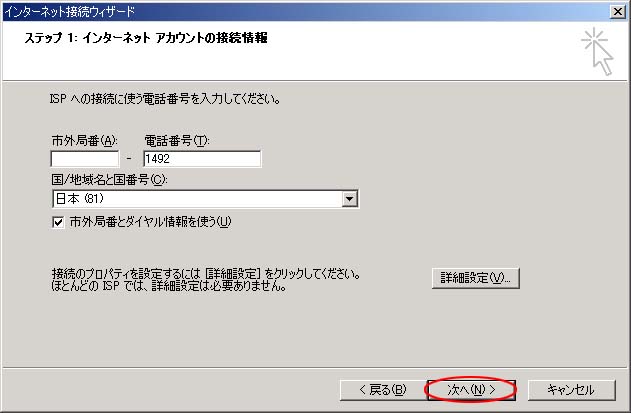 | フレッツISDNの接続先番号は全国共通で1492になります。 | ||