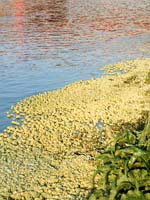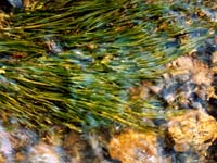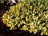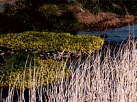 ・クレソンの群落橋の上から見ると、菜の花のように黄金色をしています。 パロットフェザーと同じようなところに 群落を作っています。 |
