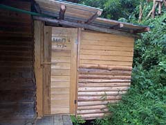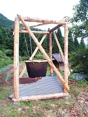 ・五右衛シャワーひまわり小屋の裏にあります。五右衛門風呂をわかして、 そこのお湯をシャワーにします。 右上に小さく写っているのが、 その五右衛門風呂です。 |
