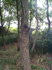 ・クヌギ林市ノ貝の登り口にある若いクヌギ林です。よく手入れされており、 クワガタがたくさん見られます。 どこかにノコギリクワガタが写っています。 |