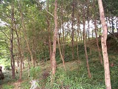 ・くわがたの林道の左斜面にコナラを植えました。林は鶏の運動場になっているので、 網で囲われています。 |