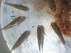 ・メダカありとあらゆる魚の稚魚を全部メダカと言い張る人も多いのですが、 これはたぶん本物のメダカです。 |