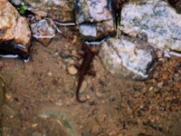 ・イモリ池にいたイモリを撮影しました。壁にはりつく爬虫類のヤモリ、 水中で生活する両生類のイモリ、 哺乳類だとタモリというのもいましたね。 イモリは真っ赤なおなかをしていて、 実はなかなかオシャレなんですよ。 |