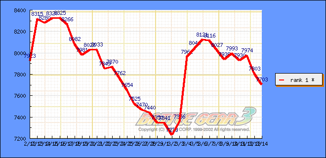 チーム総合ランキングポイント推移(2004年3月14日現在)