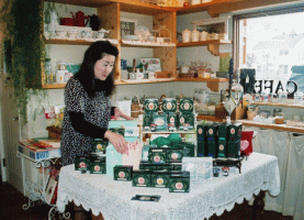 京都出身で、七年前に夫の転勤で松阪へ。雑貨好きが高じて「雑貨やお茶を楽しめる場所を」と、市内からの引っ越しを機に、自宅に店舗スペースを設けた。